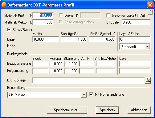 Maßstäbe: Der Maßstab für Darstellung der Lage und Deformationsmaßstab.