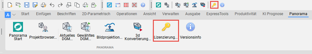 Anschließend diesen Befehl ausführen (Multifunktionsleiste oder Werkzeugkasten) und die Lizenz wird gestartet.