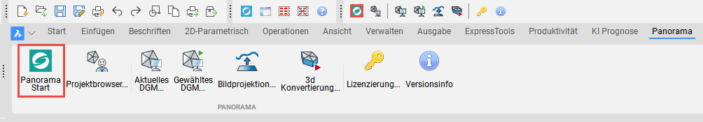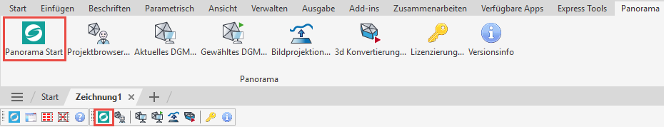 AutoCAD starten. Anschließend diesen Befehl ausführen (Multifunktionsleiste oder Werkzeugkasten) und Geosi PANO wird gestartet.