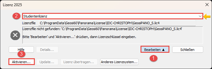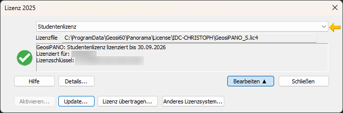 - In der Dropdownliste die Studentenlizenz auswählen