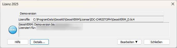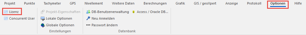 Geosi VERM starten. Anschließend auf den Reiter Optionen klicken und Lizenz auswählen
