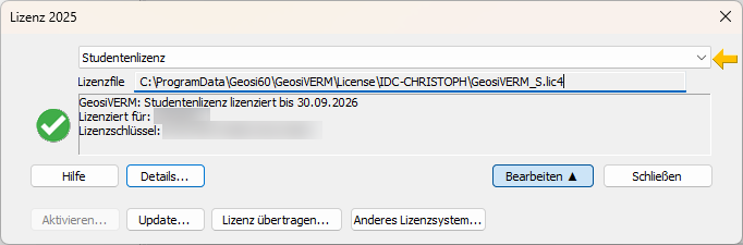- In der Dropdownliste die Studentenlizenz auswählen