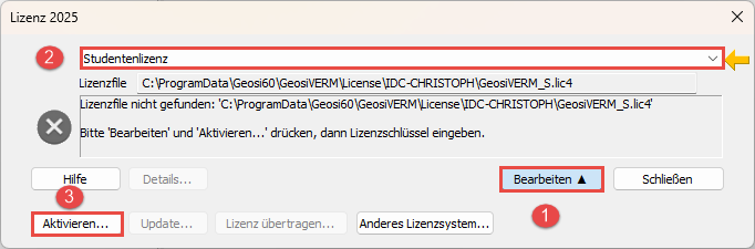 - Lizenz eingeben